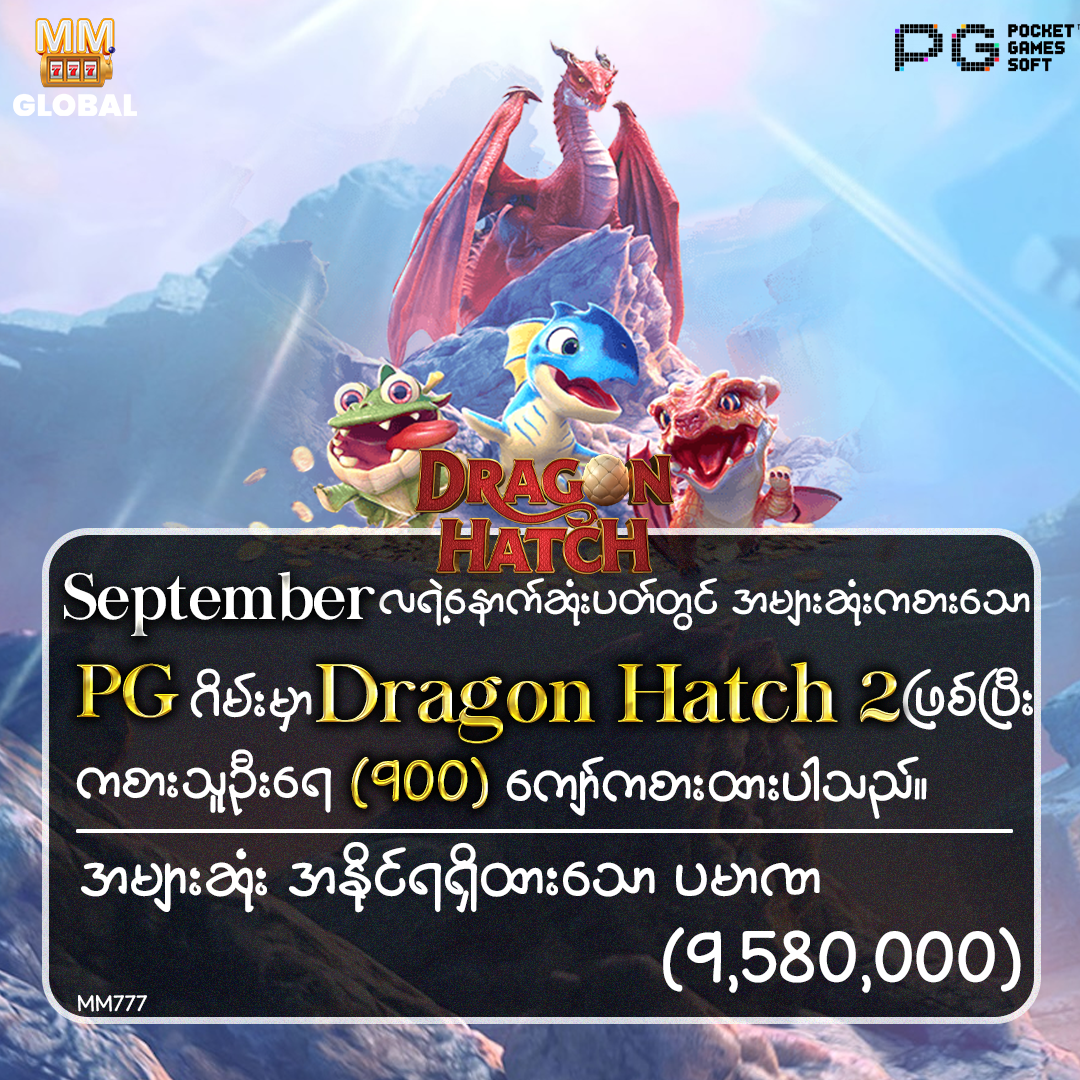 September လရဲ့နောက်ဆံုးအပတ် PG မှာကြမ်းနေတဲ့ဂိမ်းကတော့ Dragon Hatch 2 ဖြစ်ပါတယ် ရှင့် 🥰❤️