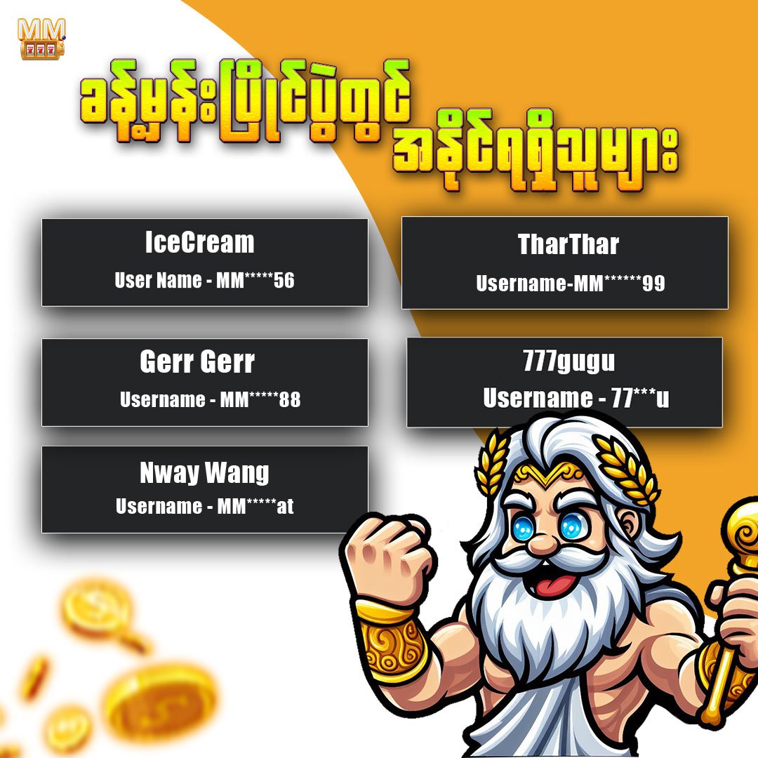 မြန်မာ၊ထိုင်း နှင့် မလေးရှားနိုင်ငံတို့မှ ယုံကြည်စိတ်ချစွာ ကစားနိုင်တဲ့ MM777 Global.လျှင်မြန်တဲ့ အော်တို ငွေသွင်း ငွေထုတ် စနစ်ဖြင့် အနိုင်ယူကစားလိုက်ပါ။
