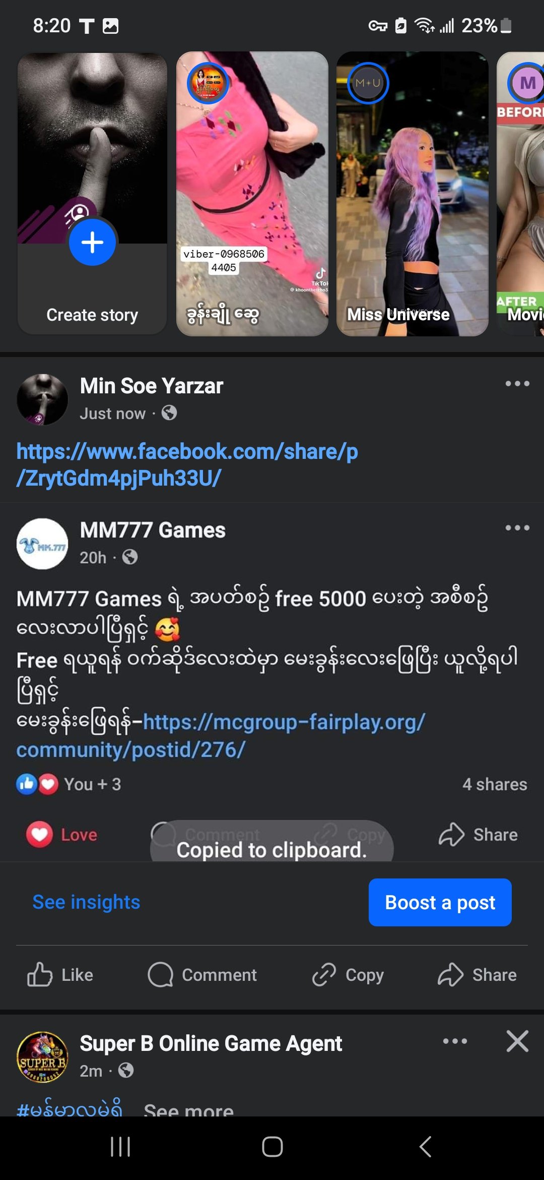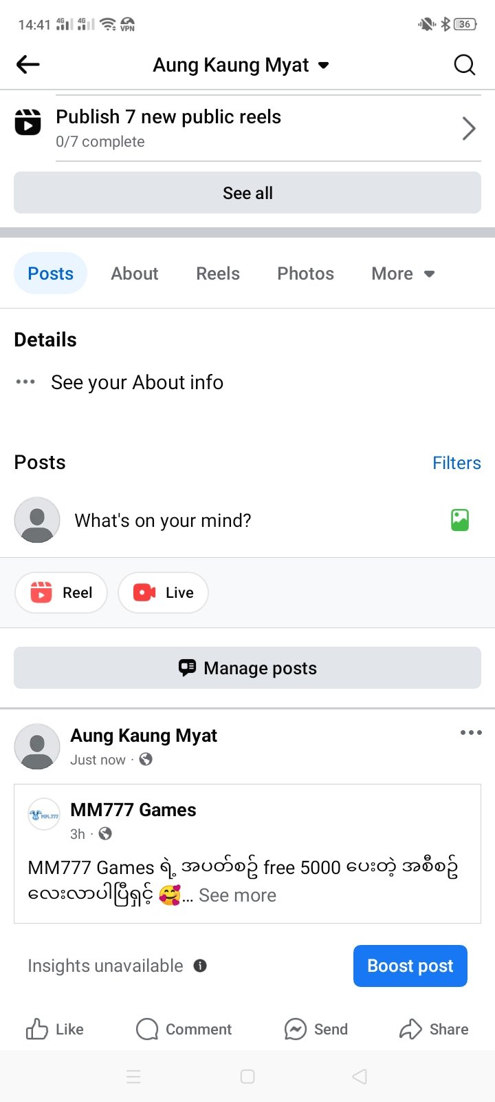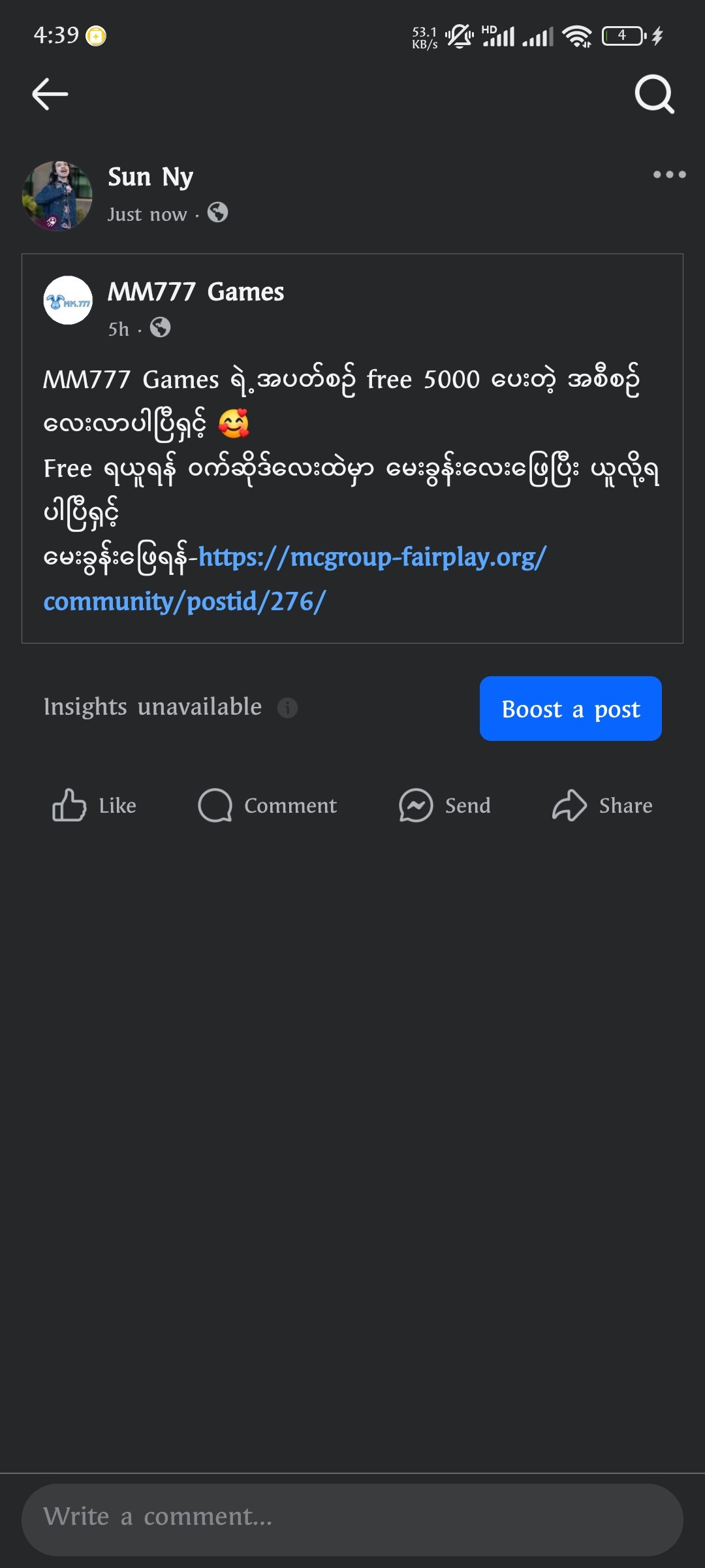 ယခု Post ကို Public နဲ့ like and Share လုပ်ထားရမည်။
