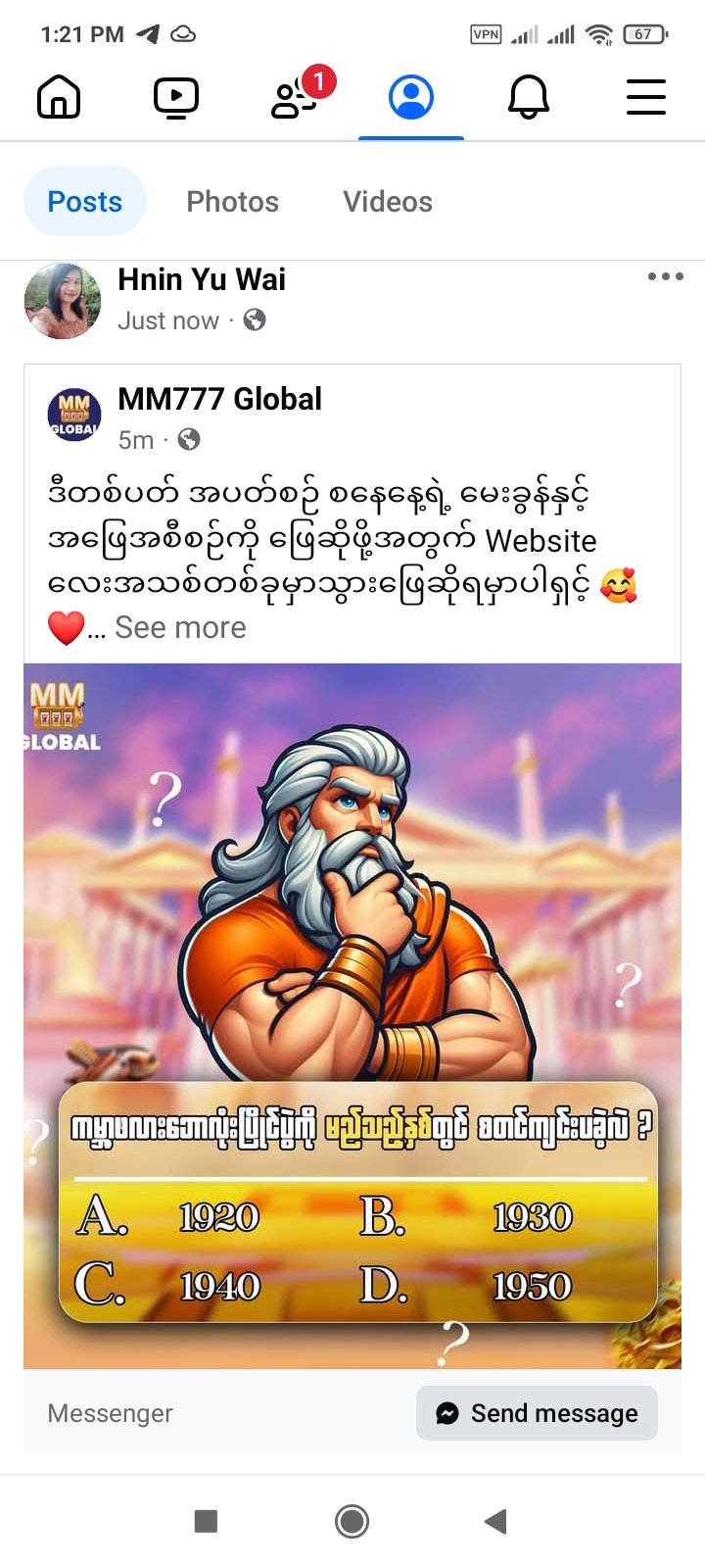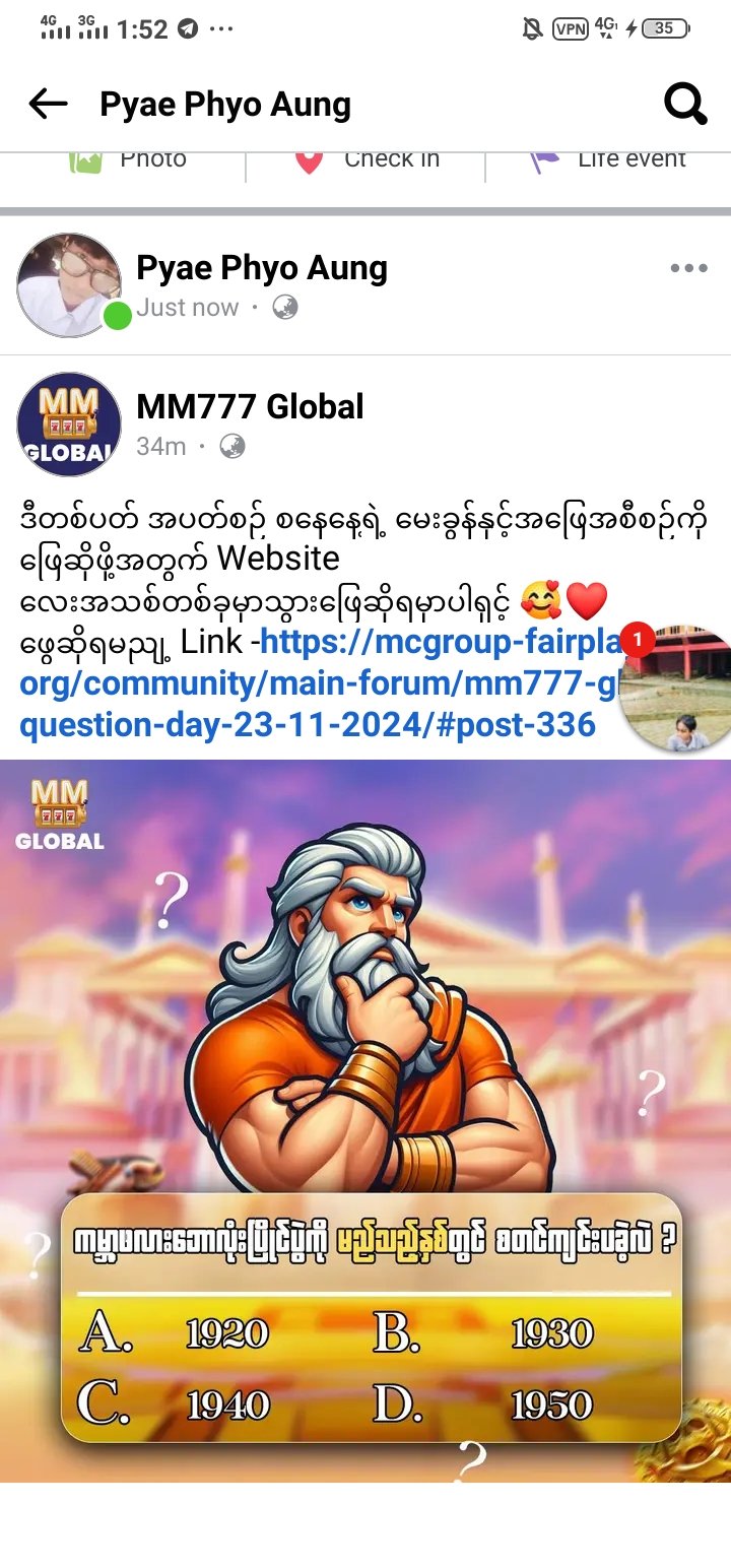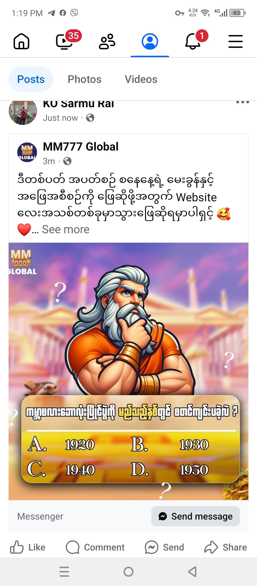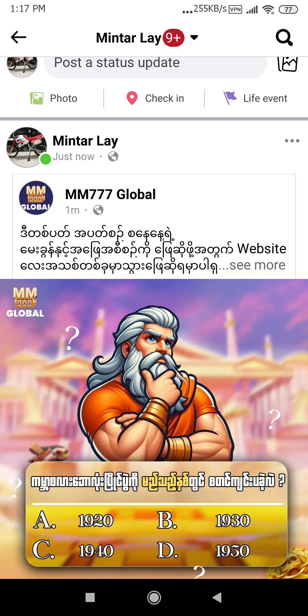 -MM777 Page ကို Like လုပ်ထားသူဖြစ်ရမည်။