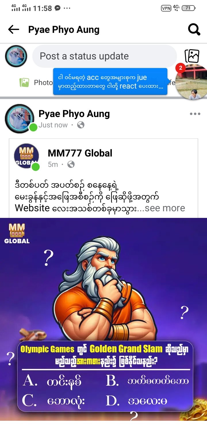 -MM777 Page ကို Like လုပ်ထားသူဖြစ်ရမည်။