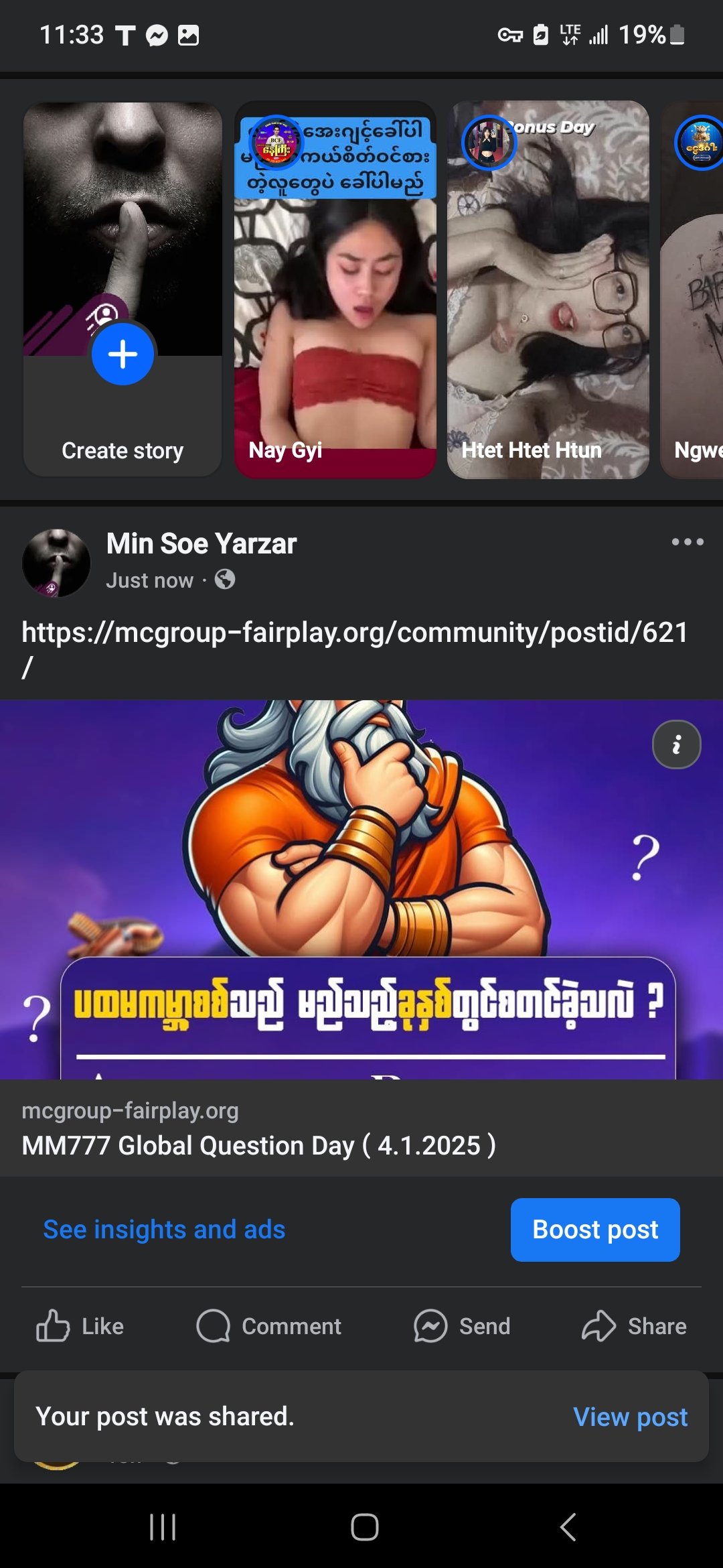 -ယခု Post ကို Like and Share လုပ်ထားရမည်။
