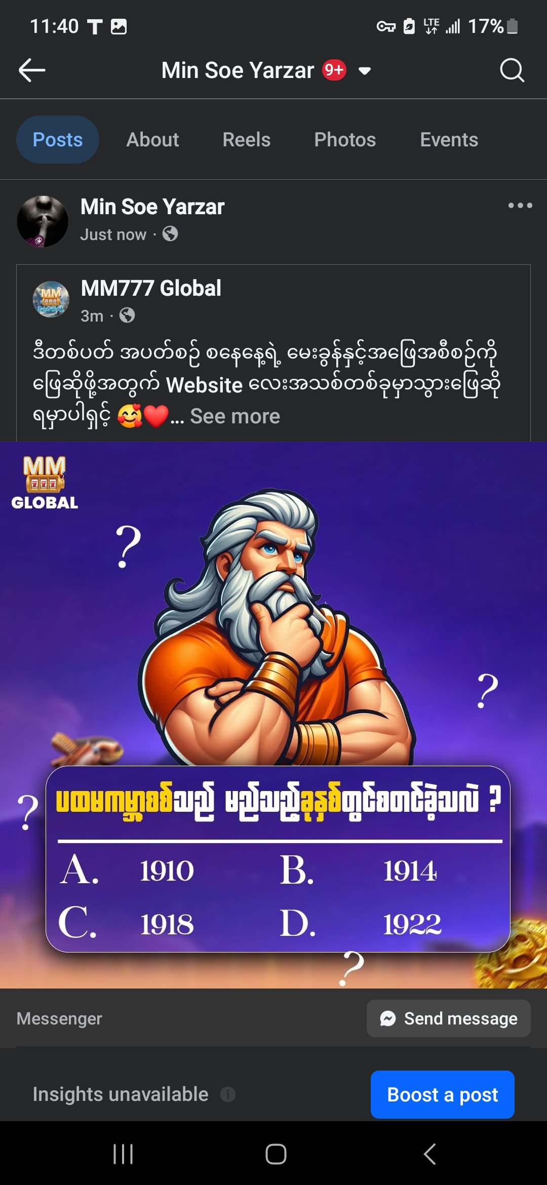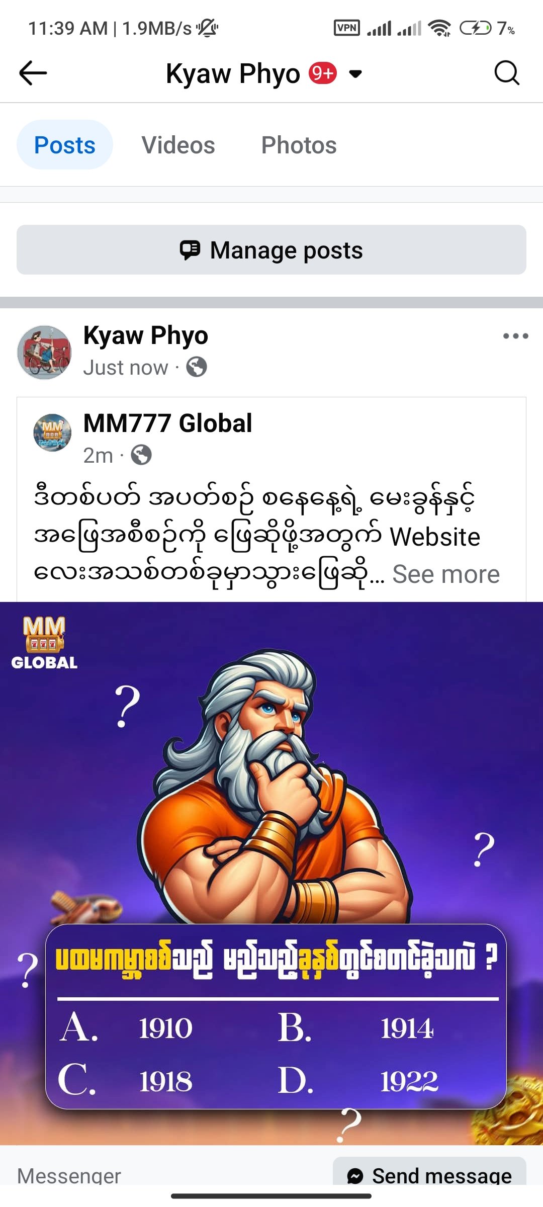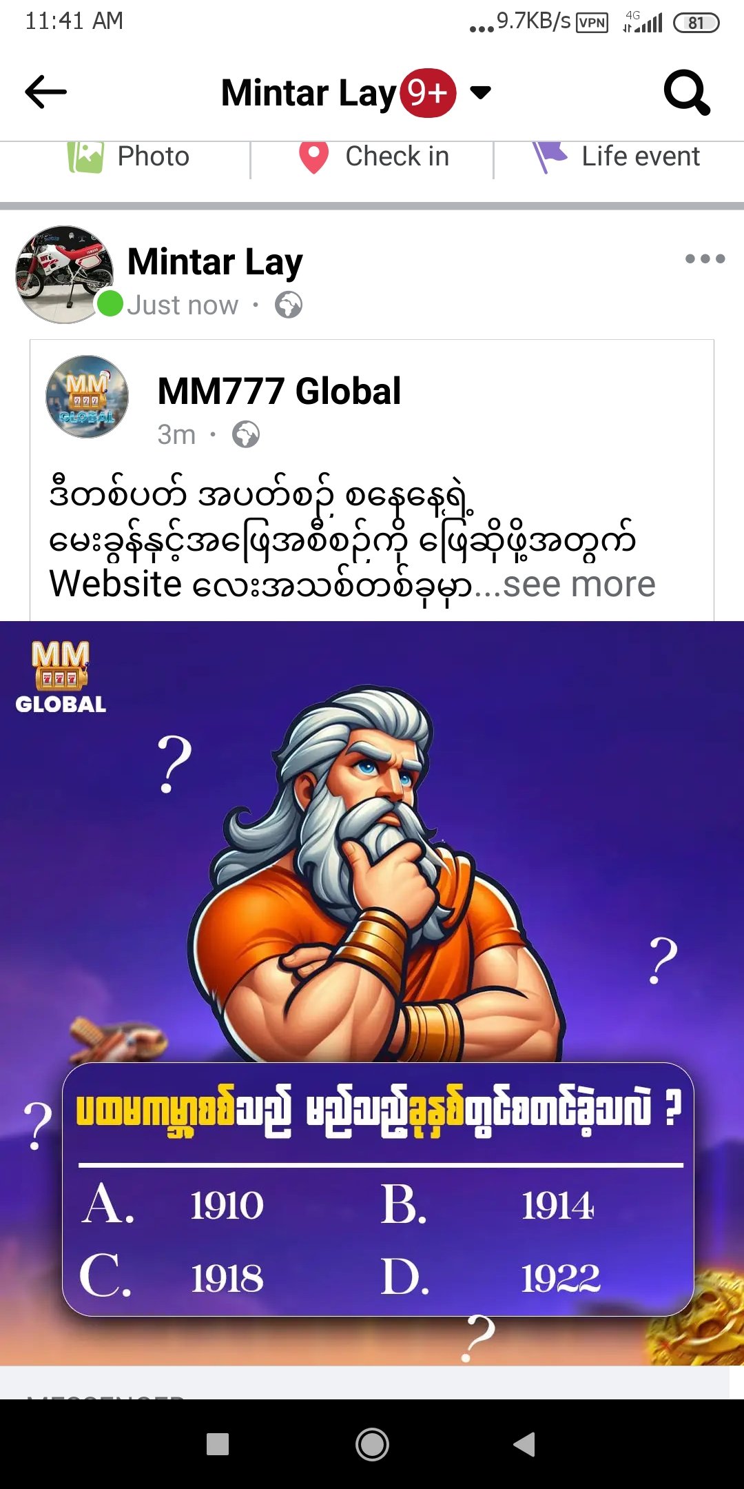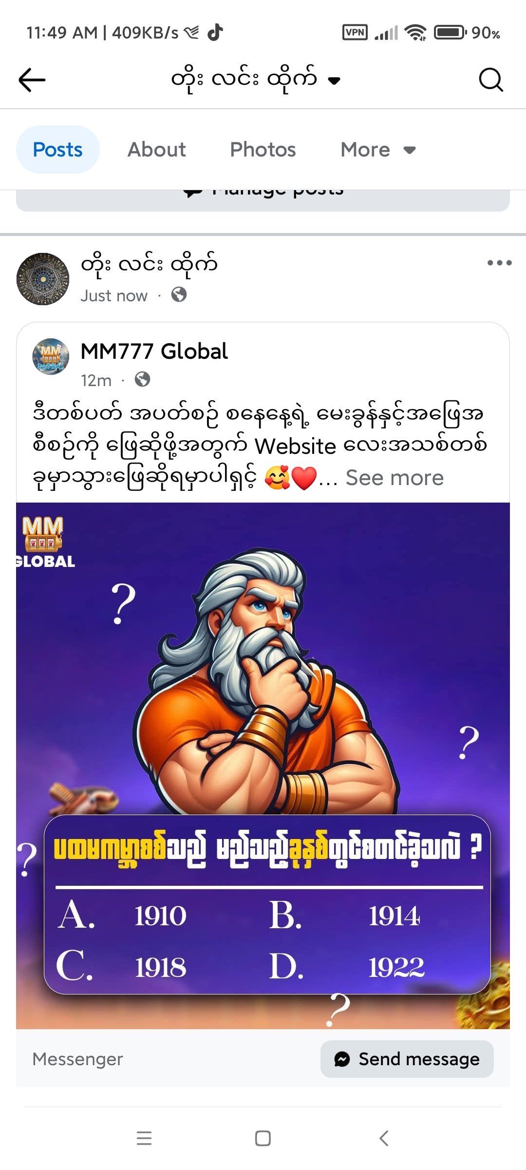 -MM777 Page ကို Like လုပ်ထားသူဖြစ်ရမည်။