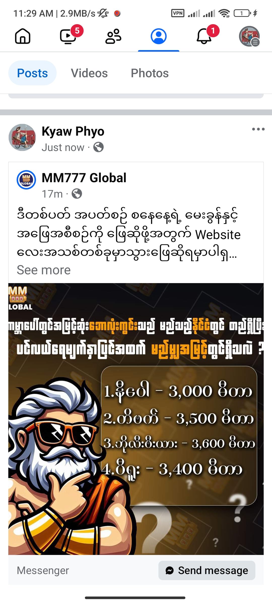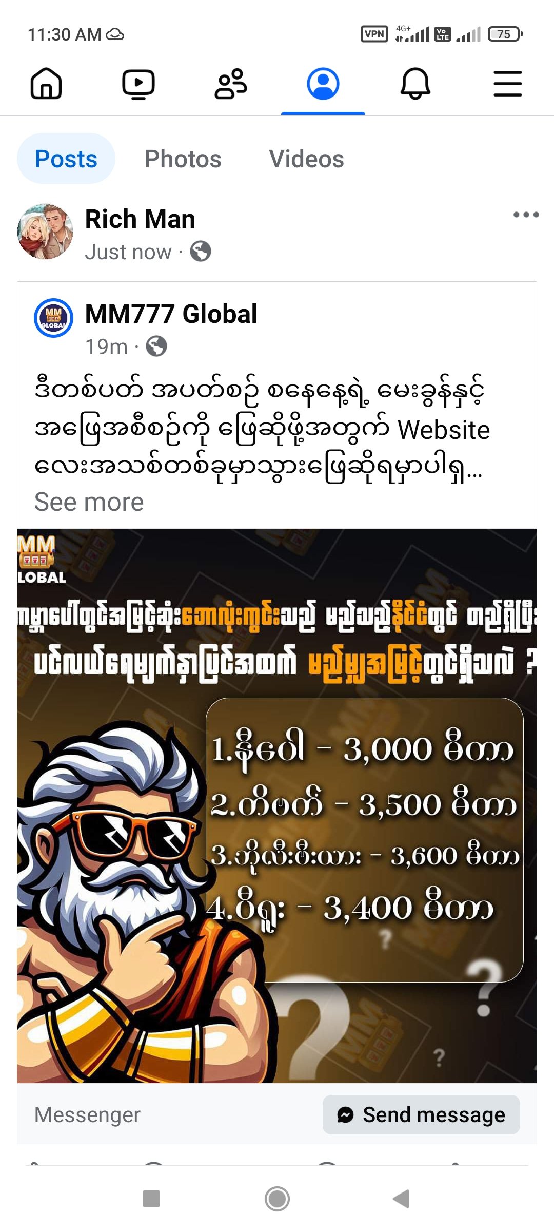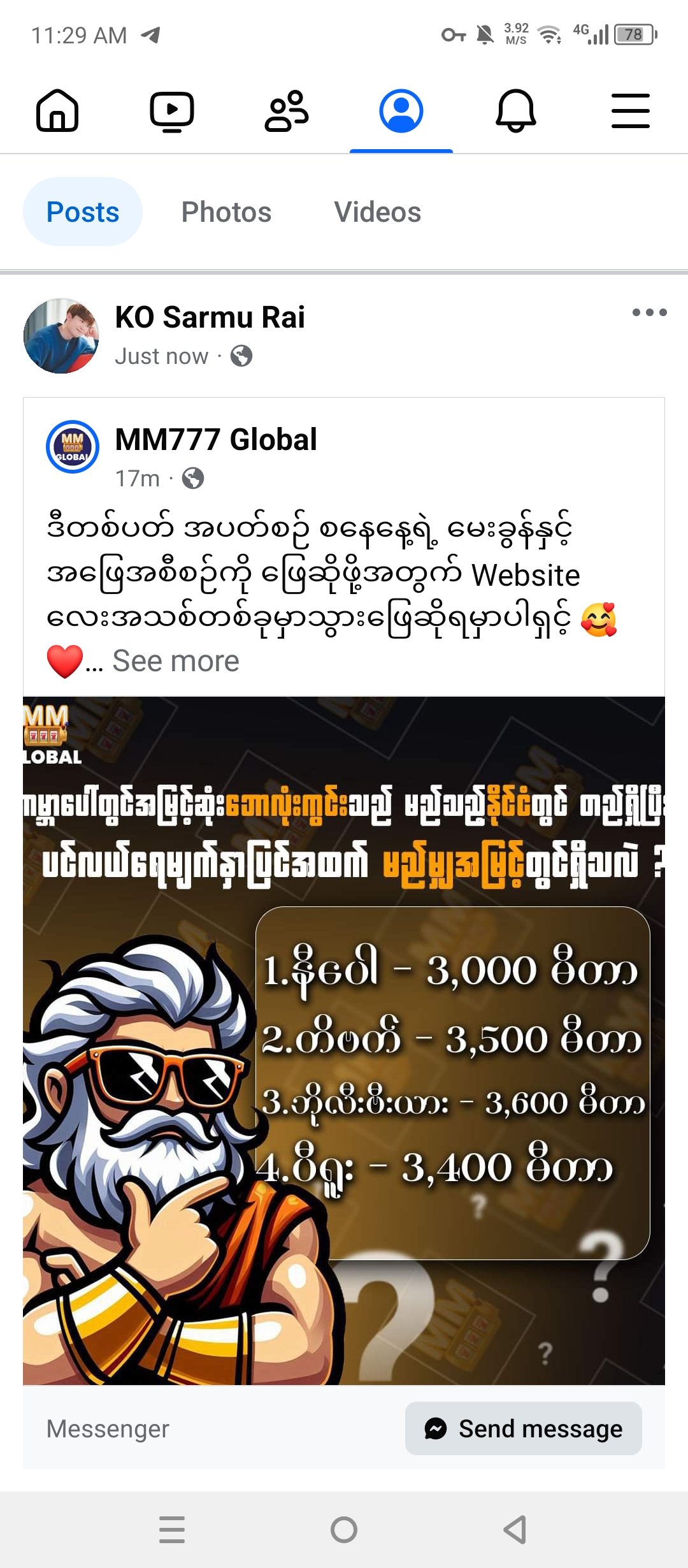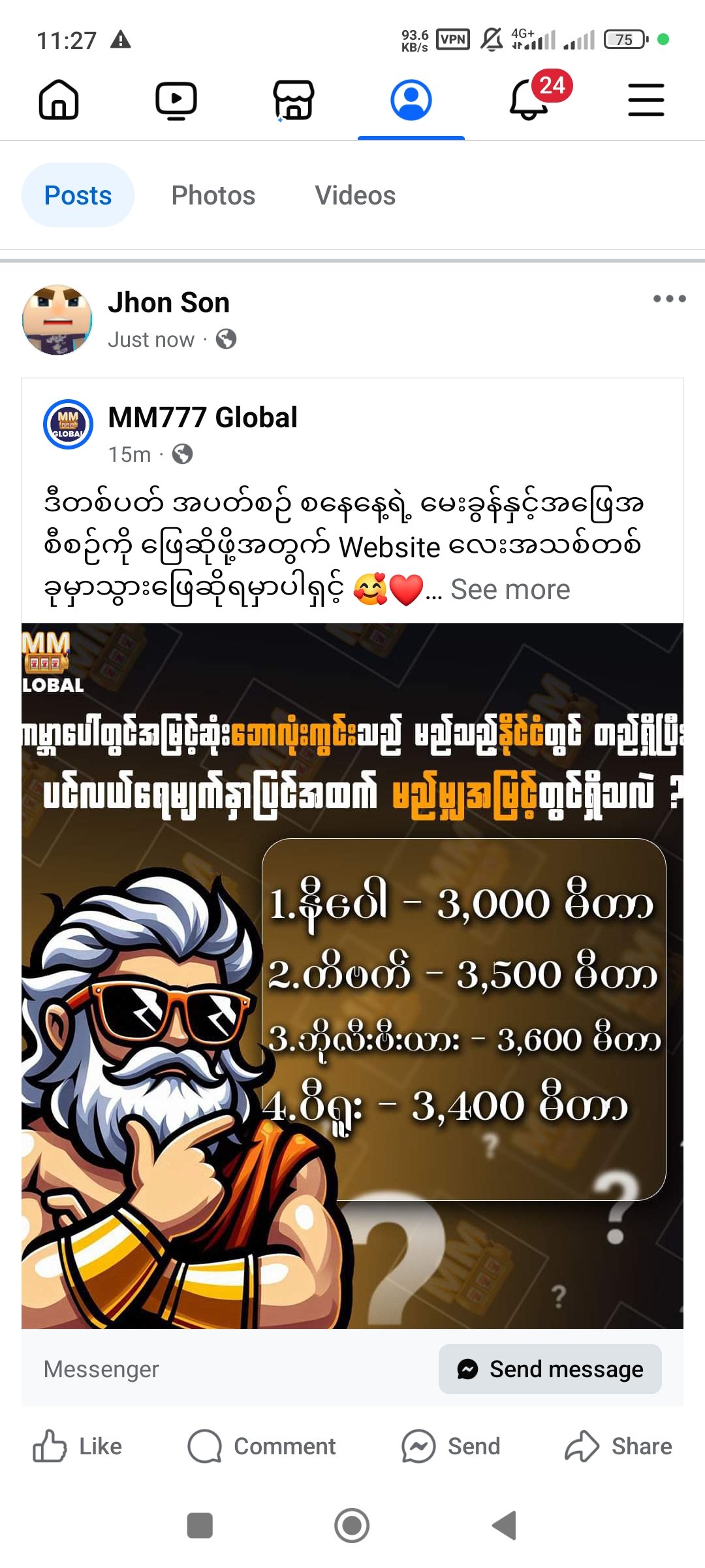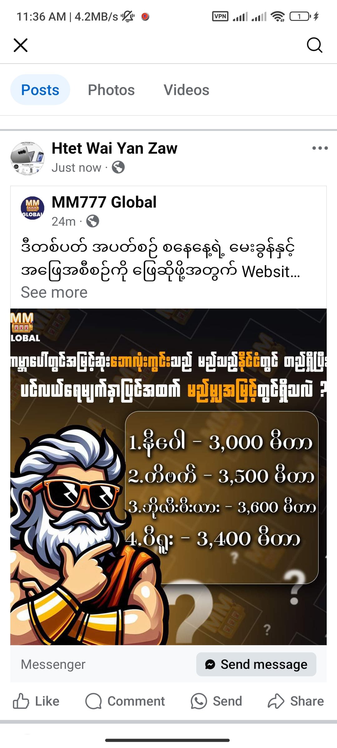 -MM777 Page ကို Like လုပ်ထားသူဖြစ်ရမည်။